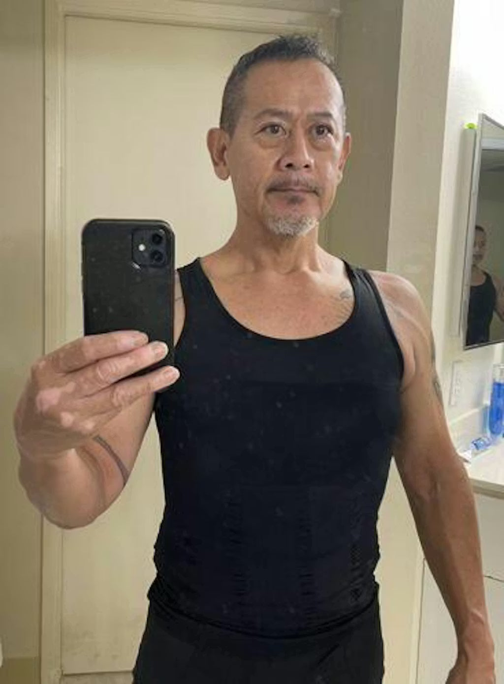 He spent a year developing a tank built specifically around how skinny fat weight is distributed — soft in the middle, undefined on the sides, flat nowhere it matters. The shaper tank he built targets those exact zones, stays invisible under any fabric, and gives you the silhouette that fitted clothes were actually designed for.